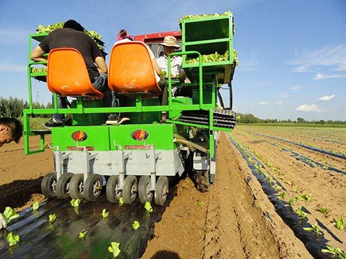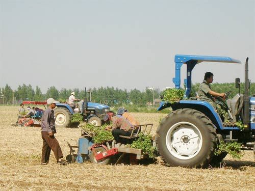 八行牽引式洋蔥苗移栽機工作現(xiàn)場